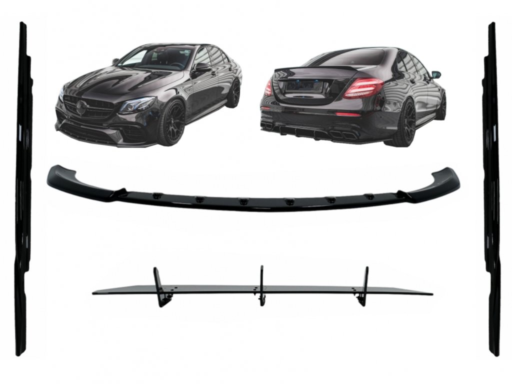 Aero Body Kit Front Bumper Lip Diffuser and Side Skirts Extensions suitable for Mercedes E-Class E63 W213 S213 (2016-2019) Piano Black