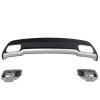 Rear Bumper Air Diffuser crafted in high quality ABS plastic, equipped with double exhaust outletsStyle Tailpipe 304 stainless steel muffler tips.
