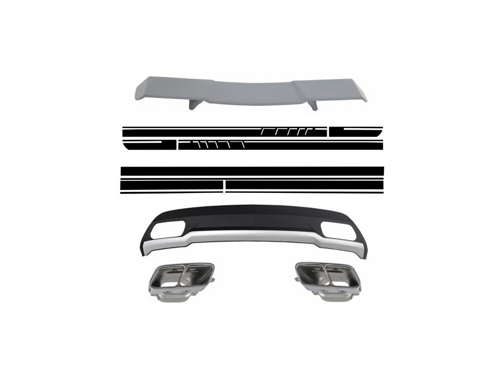 Air Diffuser with Exhaust Tips Spoiler and Stickers Black for MERCEDES A-Class W176 (2012-2018) Sport Pack