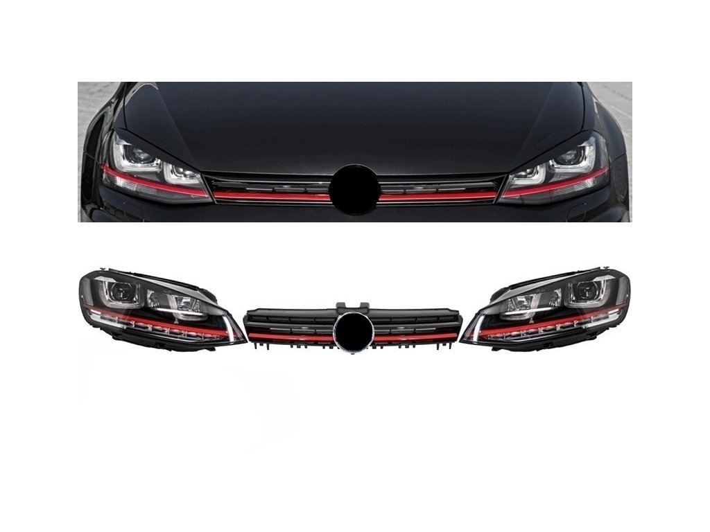 Assembly Headlights 3D LED FLOWING Dynamic Sequential Turn Light DRL with Grille suitable for VW Golf 7 VII (2012-2017) RED R20 GTI Look