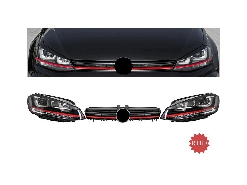 Assembly Headlights 3D LED FLOWING Dynamic Sequential Turn Light RHD with Grille suitable for VW Golf 7 VII (2012-2017) RED R20 GTI Look