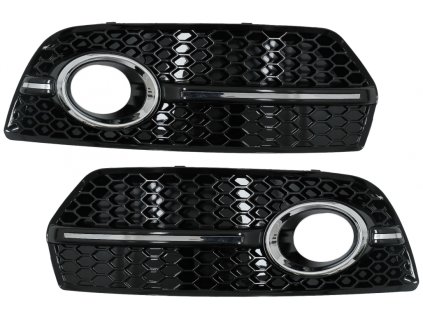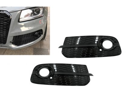 Fog Lamp Covers Side Grilles suitable for Audi Q5 SUV 8R (2008-2011) RS Design Piano Black Chrome