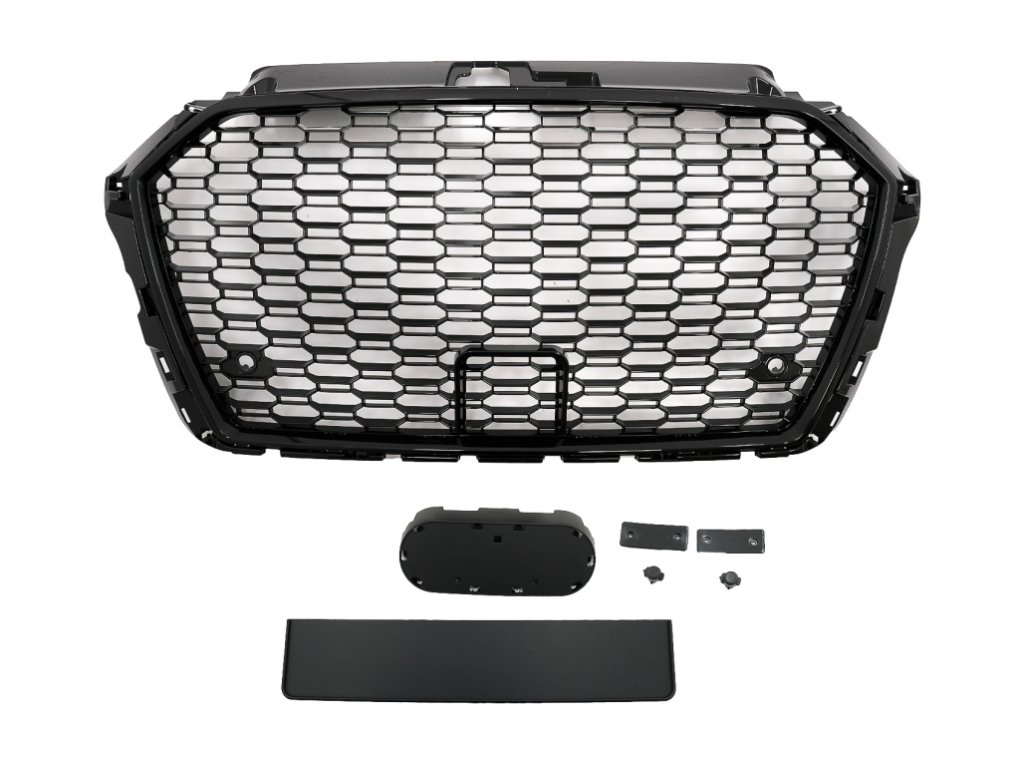 Badgeless Front Grille suitable for Audi A3 8V Facelift (2017-2018) Piano Black RS3 Design