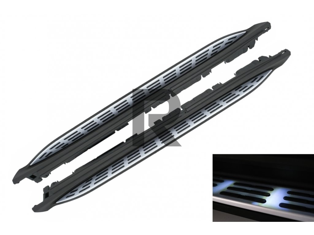 Štýlové a funkčné nášľapné dosky uľahčujú nastupovanie a vystupovanie a zároveň poskytujú robustný dizajnový prvok. Nástupné dosky sú posiate priľnavými gumenými výstupkami pre istejší krok aj v nepriaznivom počasí. A elegantné, bezproblémovo integrované LED osvetlenie schodíka vám pomôže osvetliť cestu na palubu.Vhodné pre