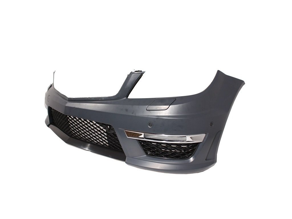 Complete C63, sporty looking, A-Design body kit.Front Bumper equipped with PDC holes, central-lower grille, chromed side grilles with DRL, headlights washer nozzles.