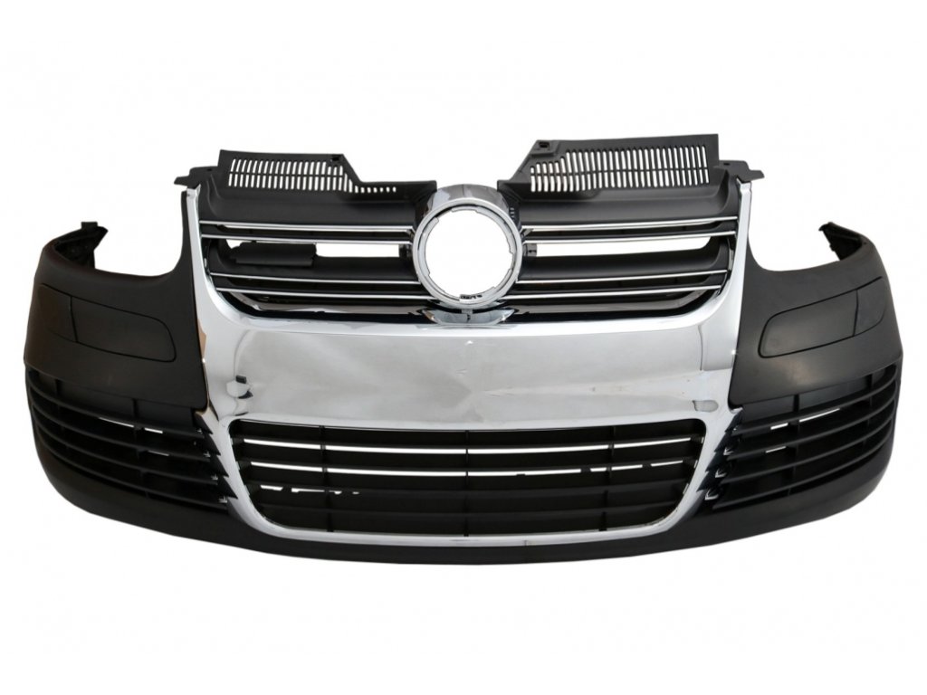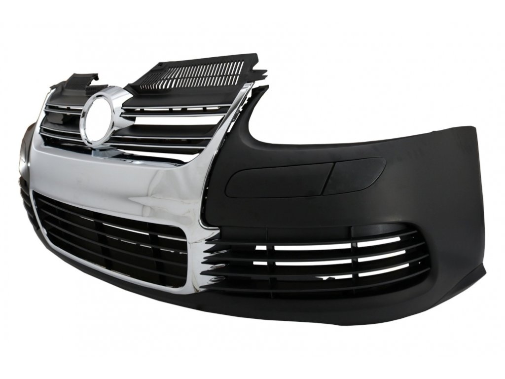 Front Bumper equipped with Central Grille with R32 and Volkswagen Badges and side grilles, the bumper is prepared for painting process.Rear Bumper extension made of high quality polypropylene, equipped with integrated air diffuser with twin exhaust outlet and aluminium heat protection.