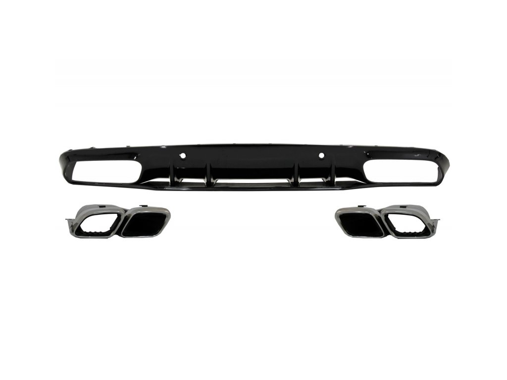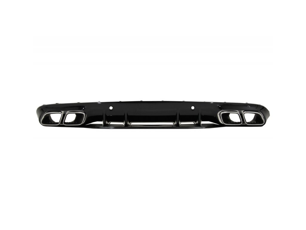 Difúzor zadného nárazníka, facelift, dizajn C63S, čiernyDifúzor vzduchu do zadného nárazníka vyrobený z vysoko kvalitného ABS plastu s dvojitými vývodmi pre koncovky dvojitého tlmiča výfuku a otvory pre PDC