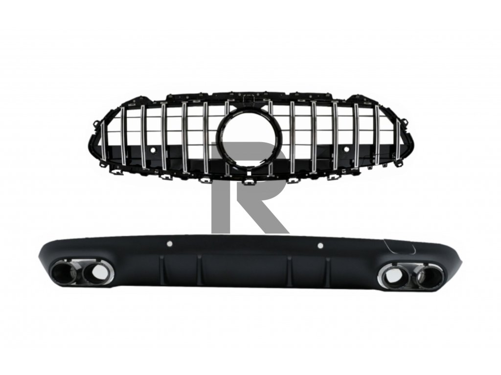 Centrálna mriežka s difúzorom a koncovkami výfuku čierna Vhodná pre Mercedes CLS-Class C257 (2018-up) GTR CLS53 Design iba pre zadný nárazník AMG Line