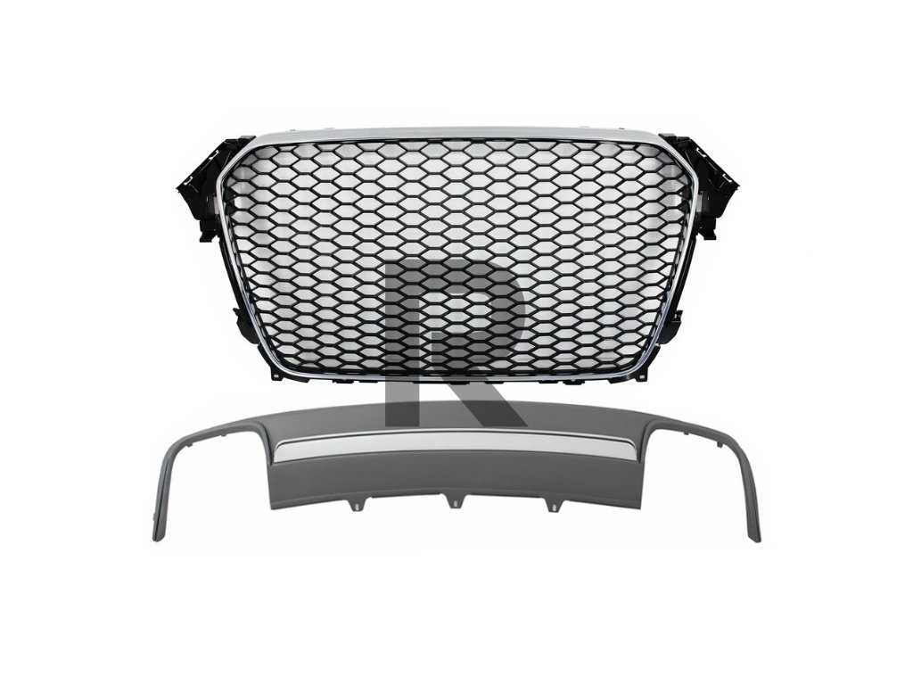 Difúzor do zadného nárazníka S4 Design vyrobený z vysoko kvalitného ABS plastu, vybavený dvojitými výfukovými otvormi.Centrálna mriežka bez odznaku, dizajn RS