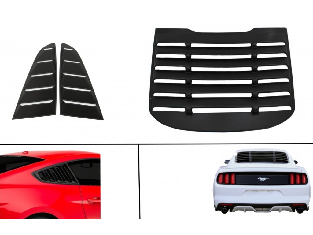 Classic Quarter Side Window Louvers suitable for Ford Mustang Mk6 VI Sixth Generation (2015-2019) with Rear Window Louvers Look Black
