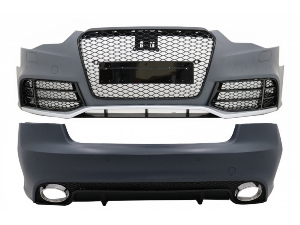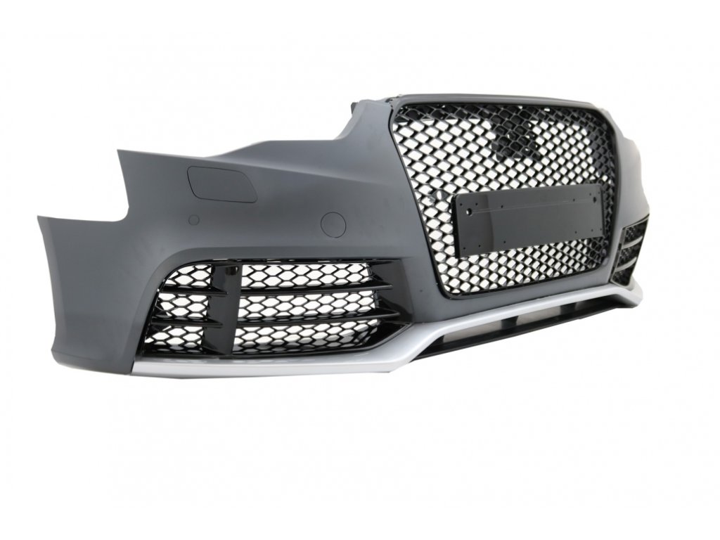 Front Bumper made from high quality polypropyleneEquipped with honey comb RS5 design central grille, side grilles and lower bumper extension
