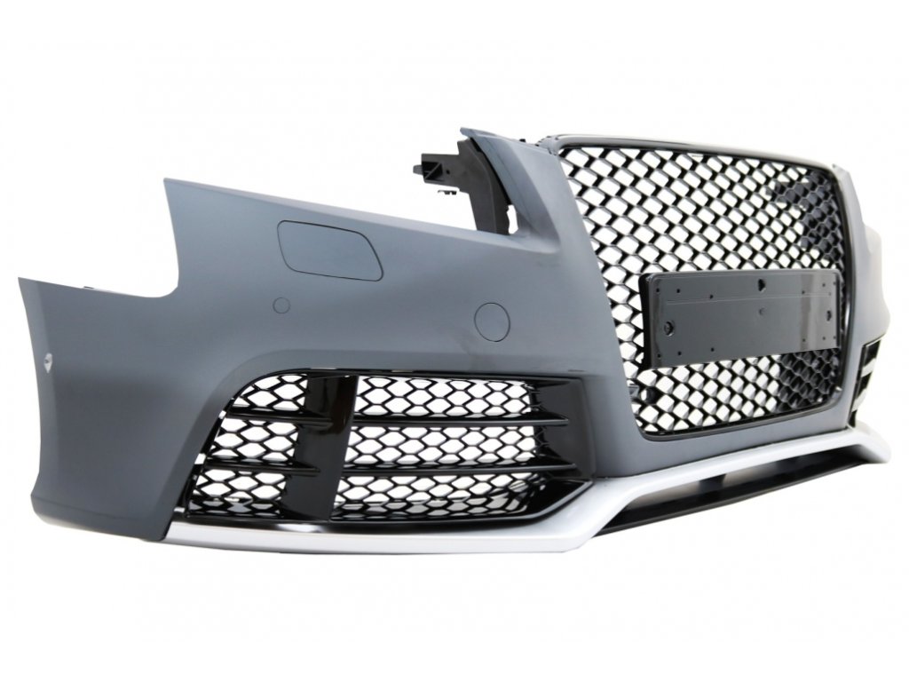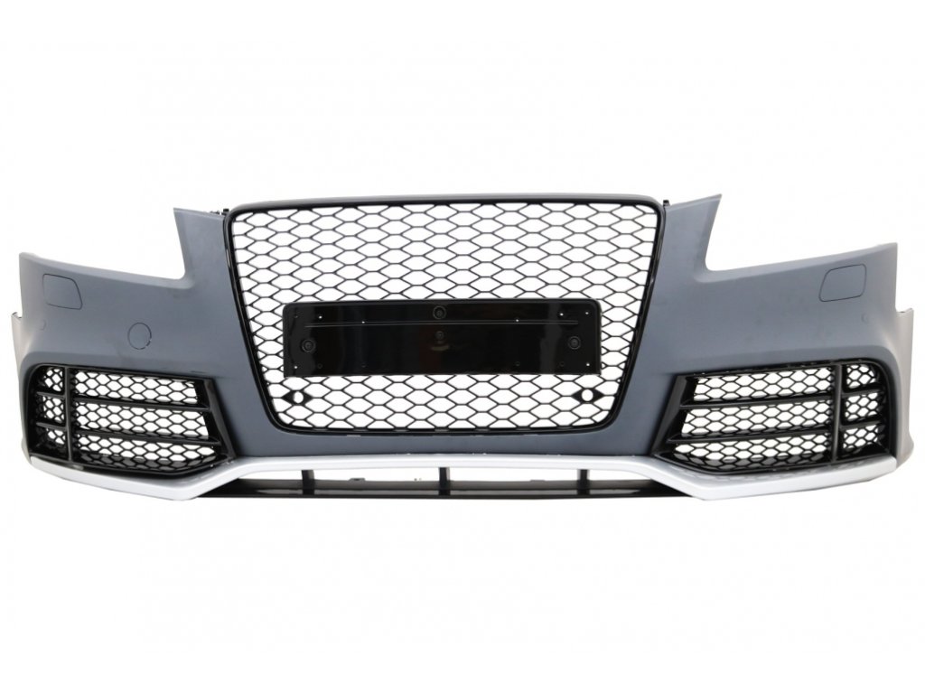 Front Bumper RS5 design made from high quality polypropylene.Equipped with honey comb RS5 design central grille, side grilles and lower bumper extension.
