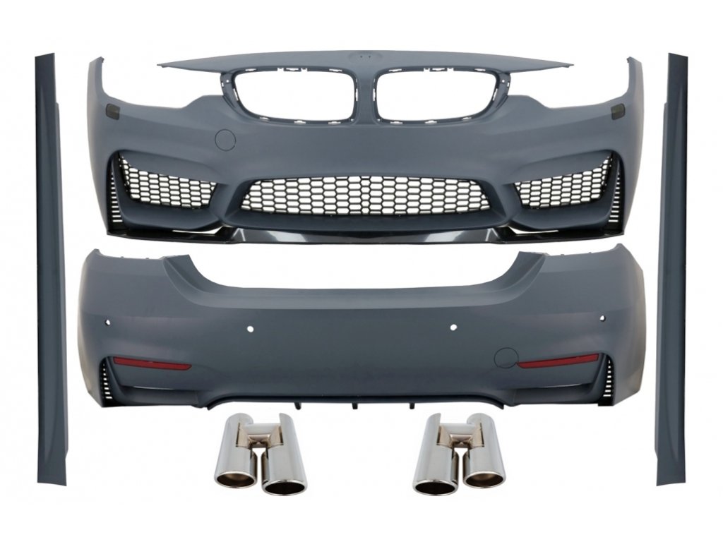 Complete Body Kit suitable for BMW 4 Series F32 F33 Coupe Cabrio (2013-2019) with Chromed Exhaust Muffler Tips M4 Design