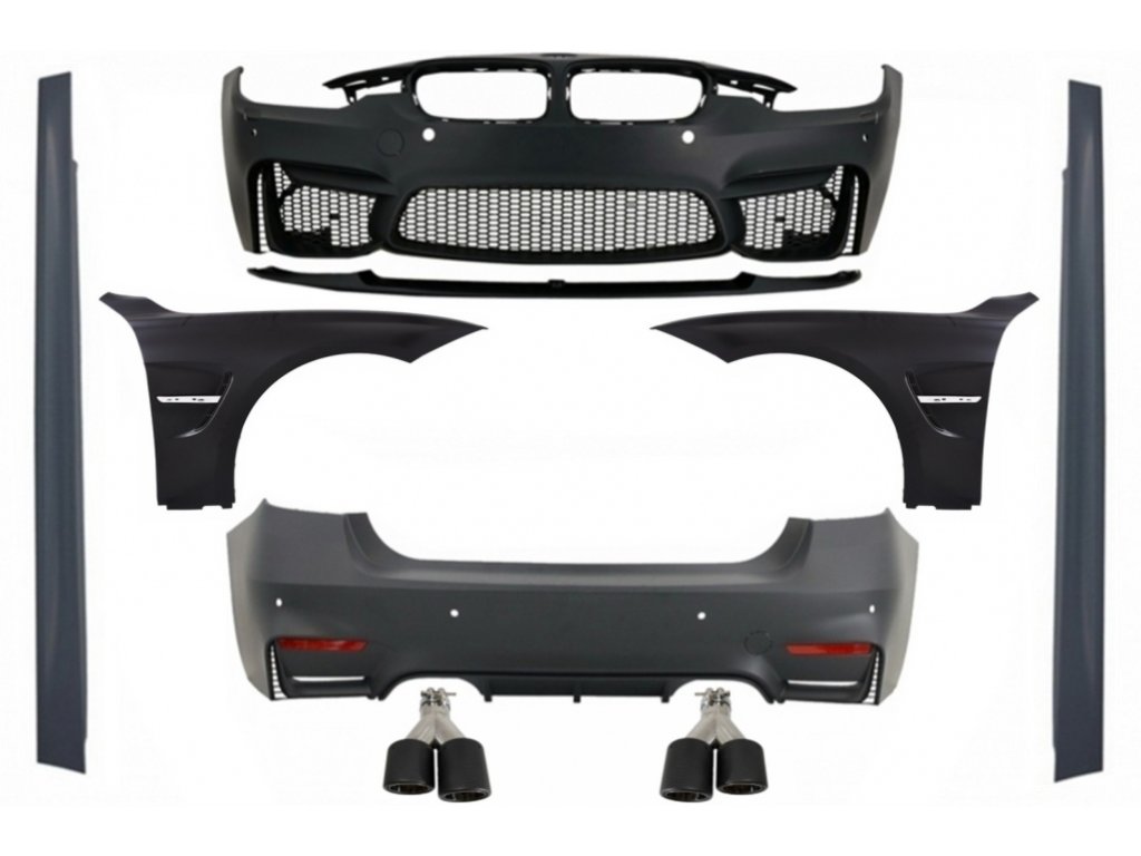 Complete Body Kit suitable for BMW F30 (2011-2019) with Front Fenders and Dual Twin Exhaust Muffler Tips Carbon Fiber EVO II M3 CS Style Without Fog Lamps