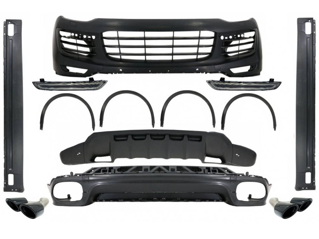Complete Body Kit suitable for Porsche Cayenne Facelift (2014-2017) GTS Design with Exhaust Muffler Tips Glossy Black