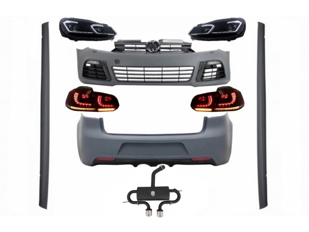 Complete Body Kit suitable for VW Golf VI 6 MK6 (2008-2013) R20 Design with Headlights LED and Taillights Dynamic Turning Light + Complete Exhaust System