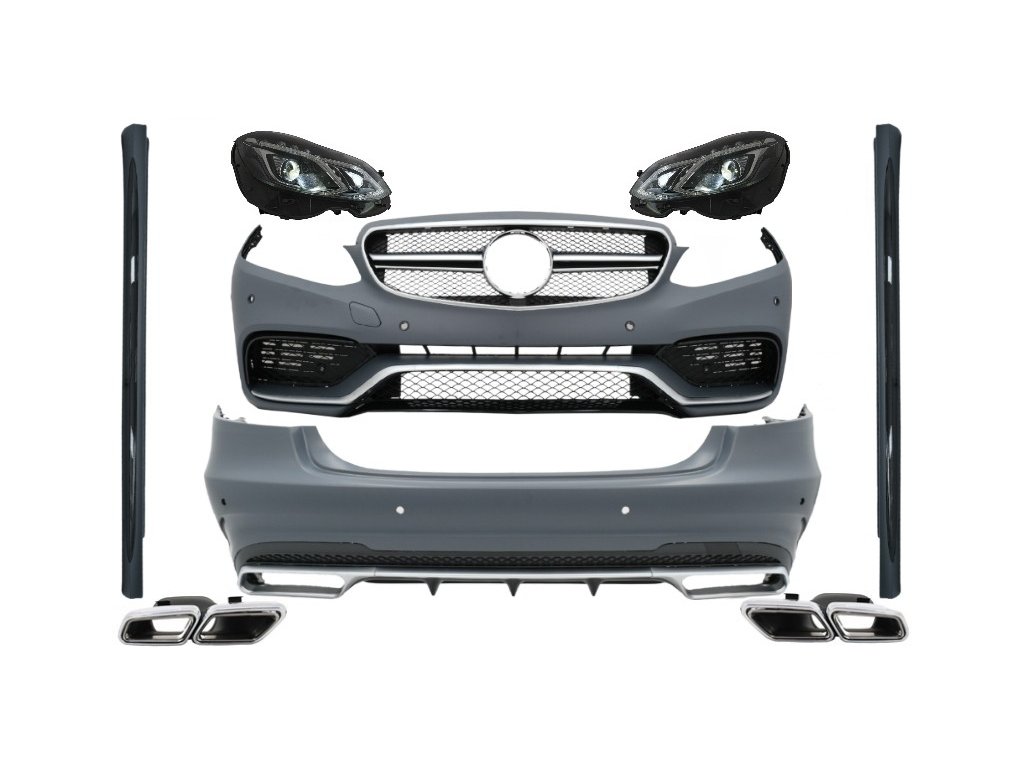 Complete Body Kit with Exhaust Tips and LED Xenon Headlights suitable for Mercedes E-Class W212 (2013-2016) E63 Design