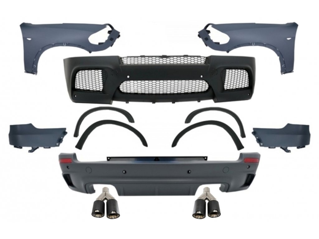 Complete Body Kit with Front Fenders with Dual Twin Exhaust Muffler Tips Carbon Fiber Matte suitable for BMW X5 E70 (2007-2013) X5M M Design