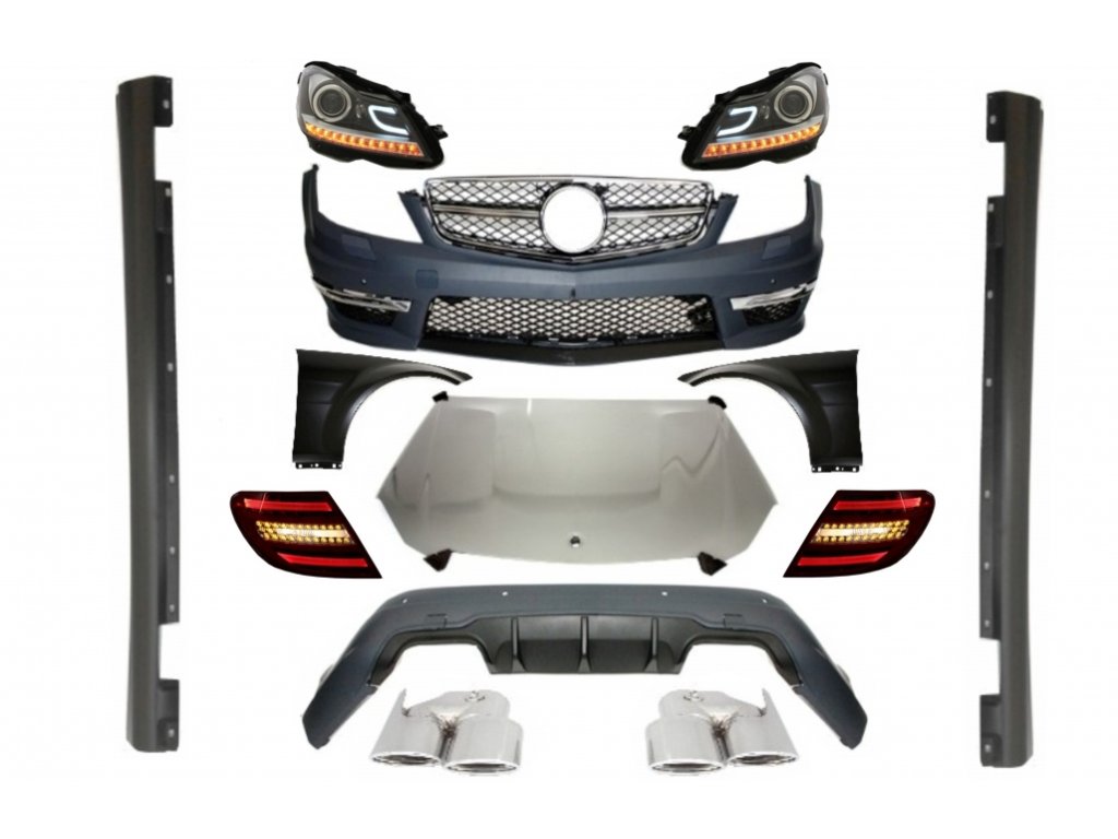 Complete Conversion Retrofit Body Kit with Lights suitable for Mercedes C-Class W204 (2007-2014) Facelift C63 Design