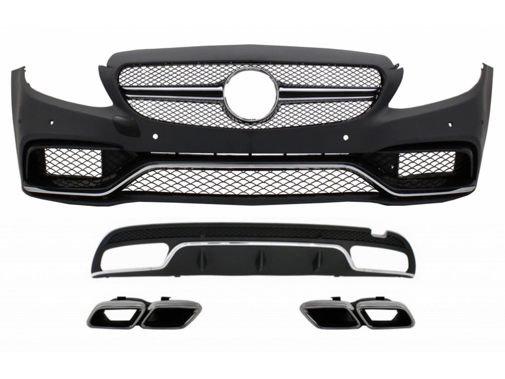 Conversion Body Kit suitable for Mercedes C-Class W205 S205 (2014-2018) C63 Design Front Bumper with Rear Diffuser and Exhaust Tips