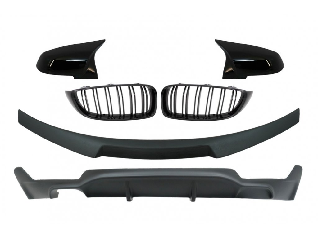 Conversion Package to M Performance Design Central Kidney Grilles With Trunk Spoiler and Mirror Covers suitable for BMW 4 Series Coupe F32 (2013-up) Air Diffuser Matte Black