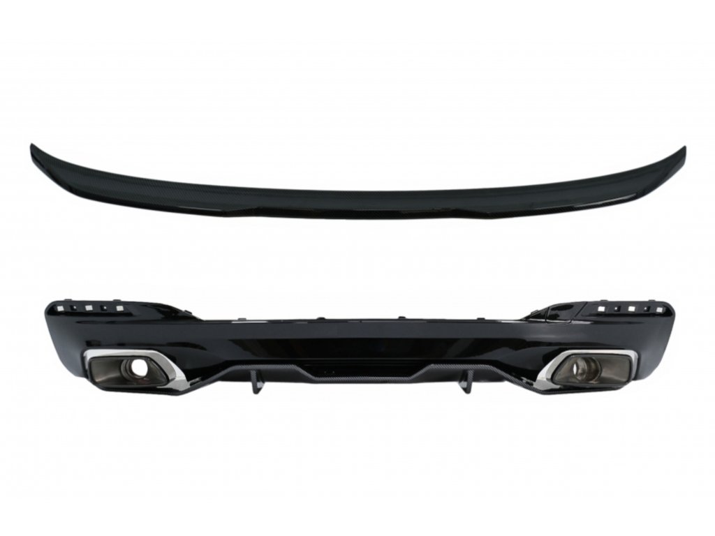 Diffuser with Exhaust Tips and Trunk Boot Spoiler suitable for BMW 5 Series G30 (2016-2019) 540 M Performance Design Carbon Look