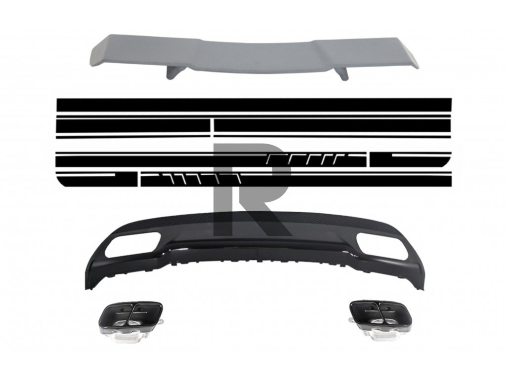 Difúzor, spojler kufra, koncovky výfuku vhodné pre MERCEDES W176 Trieda A 2012+ A-Design s bočnými polepmi, nálepkou A-Design Edition 1