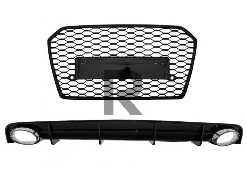 Difúzor a koncovky výfuku pre zadný nárazník Audi A6 4G Facelift (2015-2018) s prednou mriežkou RS6 Design Black, iba pre nárazník S-Line