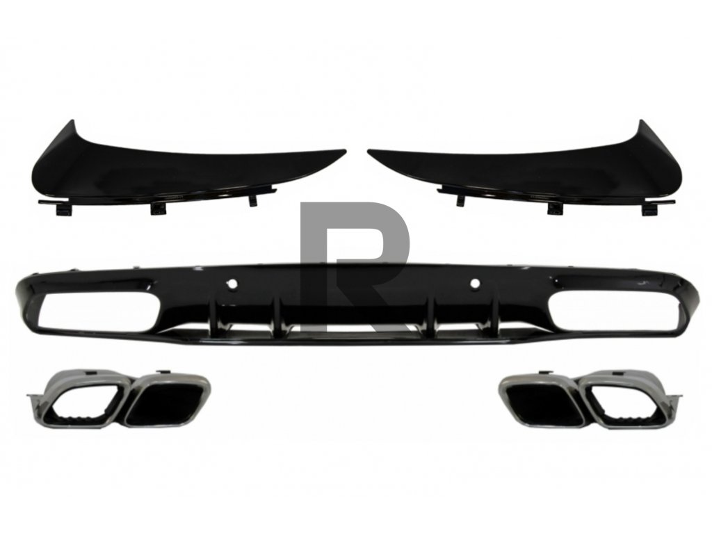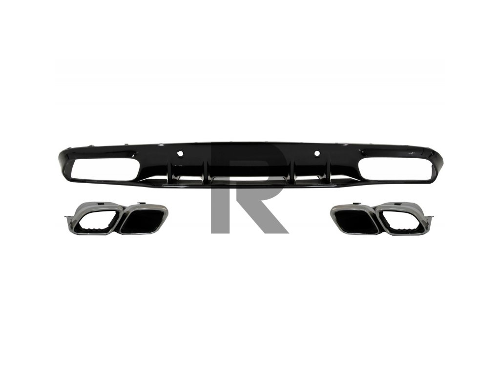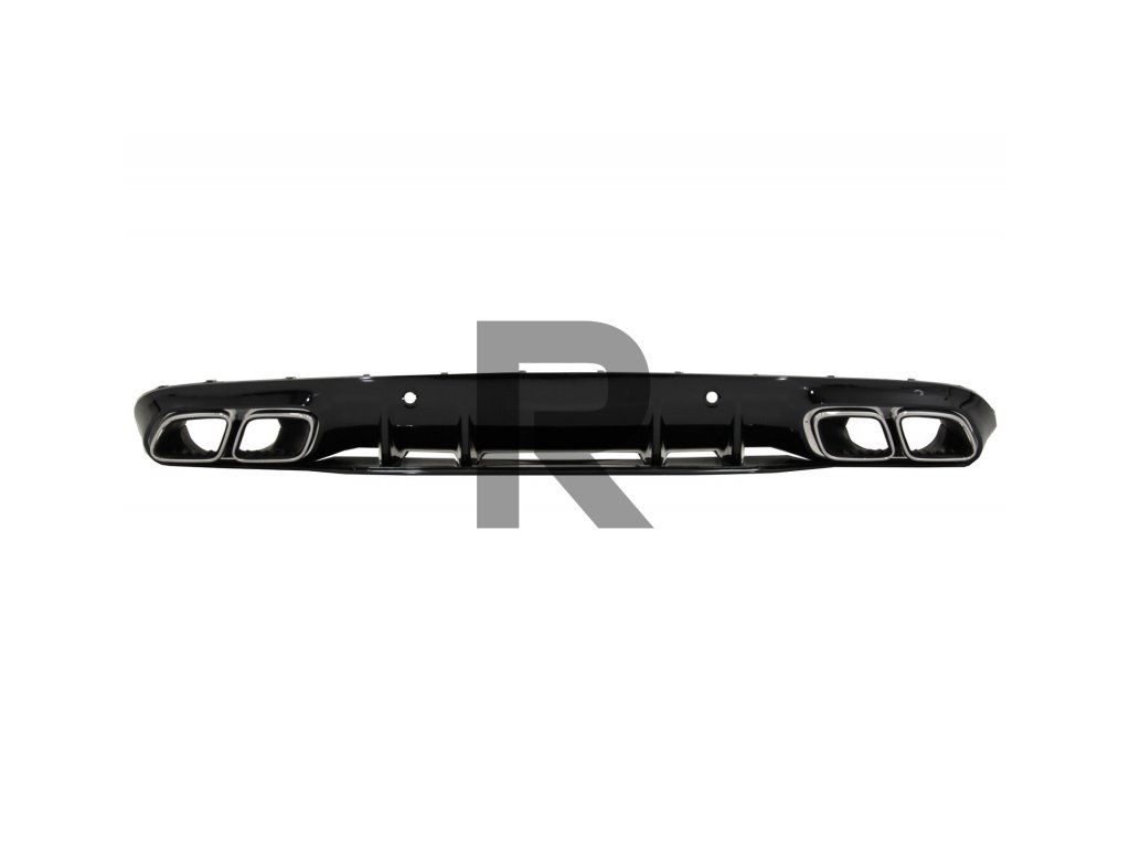 Difúzor zadného nárazníka, facelift, dizajn C63S, čiernyDifúzor vzduchu do zadného nárazníka vyrobený z vysoko kvalitného ABS plastu s dvojitými vývodmi pre koncovky dvojitého tlmiča výfuku a otvory pre PDC