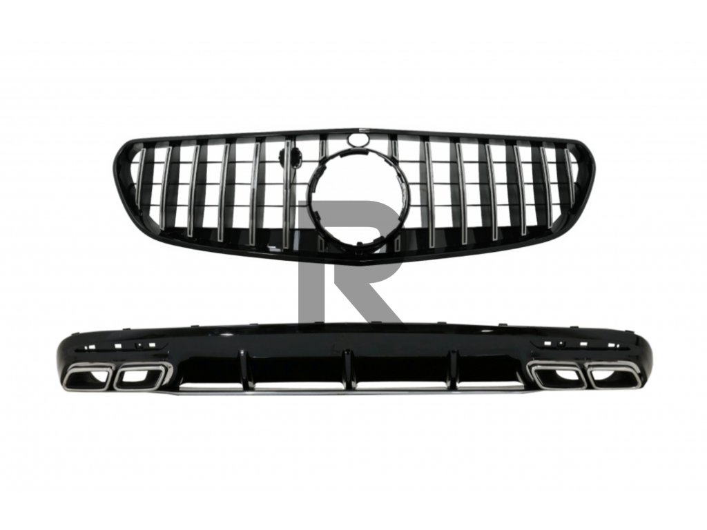 Difúzor do zadného nárazníka s koncovkami tlmiča a centrálnou mriežkou vhodný pre Mercedes triedy S C217 Coupe A217 Cabrio (2018-2020) S63 GT-R Design