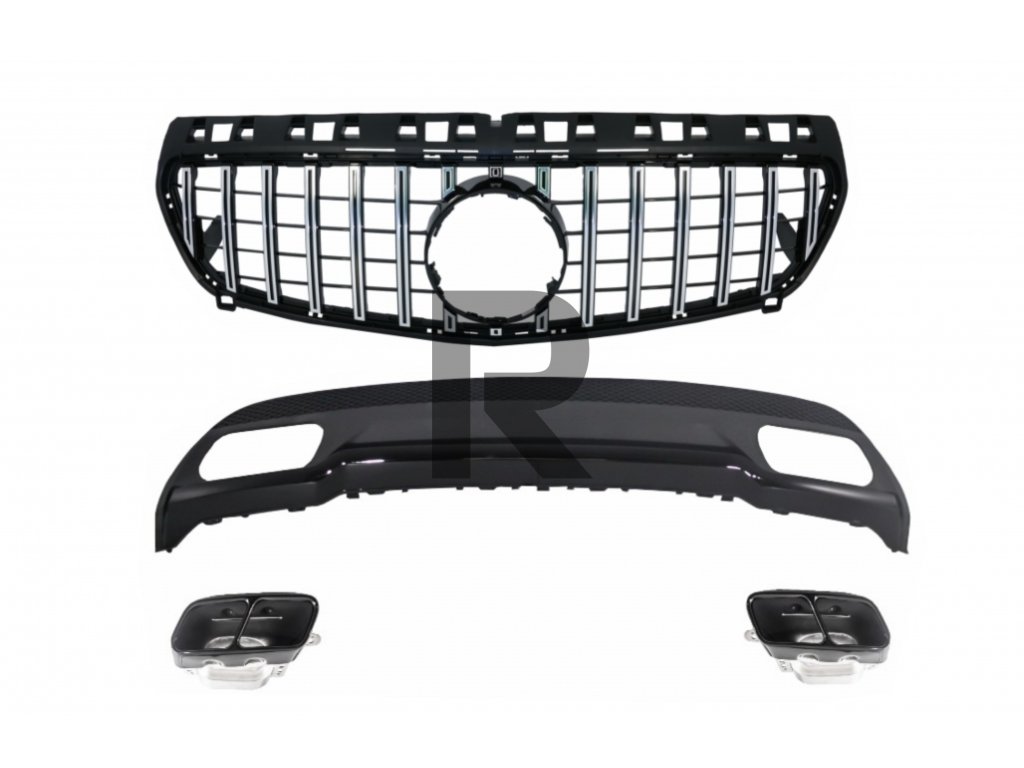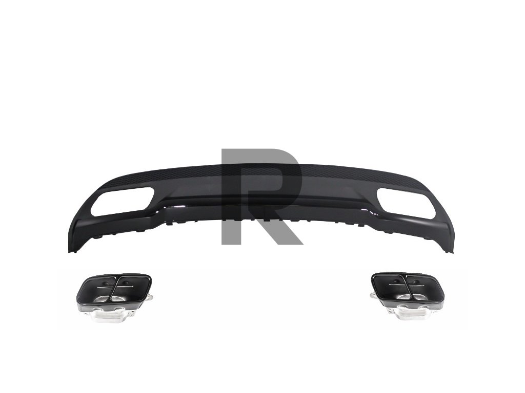 Difúzor do zadného nárazníka s koncovkami výfuku vhodný pre Mercedes triedy A W176 (2012-up) a stredovú mriežku GT-R Panamericana Design Sport Pack