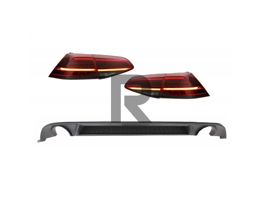 Difúzor do zadného nárazníka s LED zadnými svetlami, dynamické sekvenčné smerové svetlá, tmavo čerešňovo červená, vhodný pre VW Golf 7.5 VII (2017-up) GTI Look