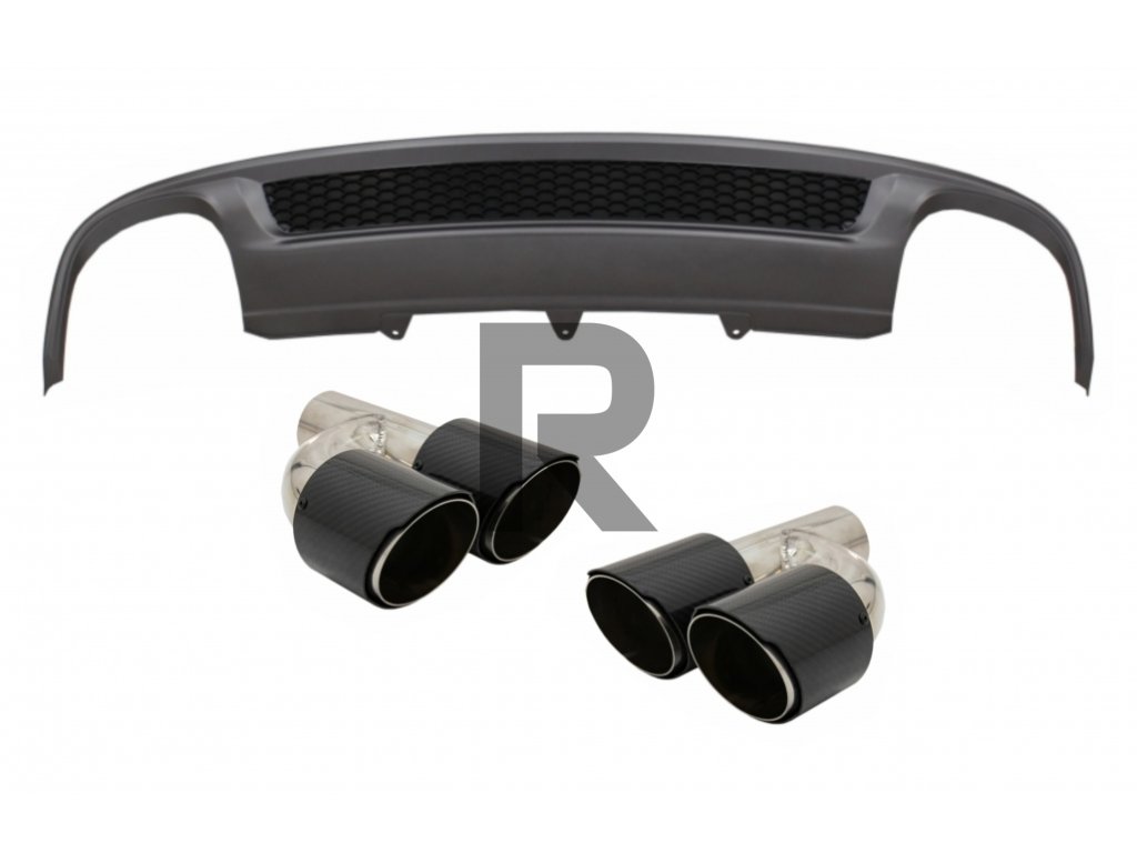 Difúzor do zadného nárazníka vhodný pre Audi A4 B8 Facelift Limousine Avant (2012-2015) s karbónovými koncovkami tlmiča výfuku, leštený S-Line dizajn, iba pre štandardný nárazník