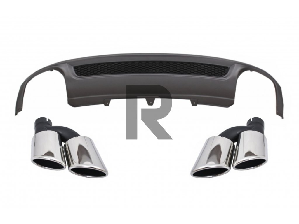 Difúzor do zadného nárazníka vhodný pre Audi A4 B8 Pre Facelift Limousine Avant (2008-2011) s koncovkami tlmiča výfuku, koncovkami S-Line Design, iba pre štandardný nárazník