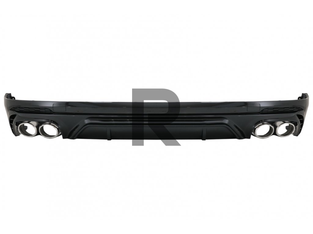 Difúzor pre zadný nárazník s dvojitým vývodom, vhodný pre Audi Q5 SUV FY S-Line (2018-2020) so striebornými koncovkami tlmiča výfuku