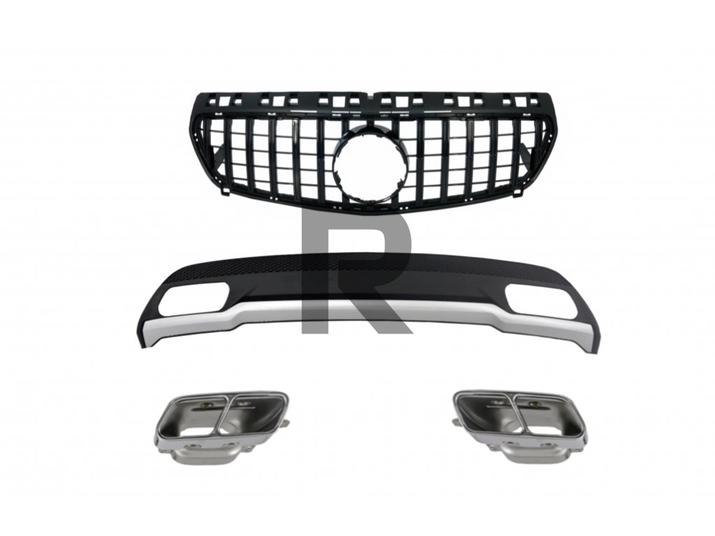 Difúzor vzduchu s koncovkami tlmiča výfuku a mriežkou GT-R Panamericana, celočierny, pre Mercedes triedy A W176 (2012-08.2015), športový balík