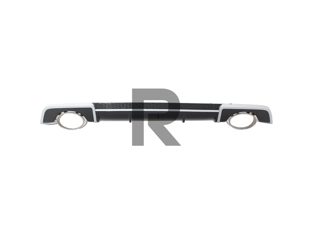 Difúzor vzduchu do zadného nárazníka, dizajn RS3Difúzor vzduchu do zadného nárazníka RS3 Design vyrobený z vysoko kvalitného polypropylénu, vybavený dvojitými výfukovými otvormi s koncovkami tlmiča z nehrdzavejúcej ocele 304 a plastovou včelinou mriežky.