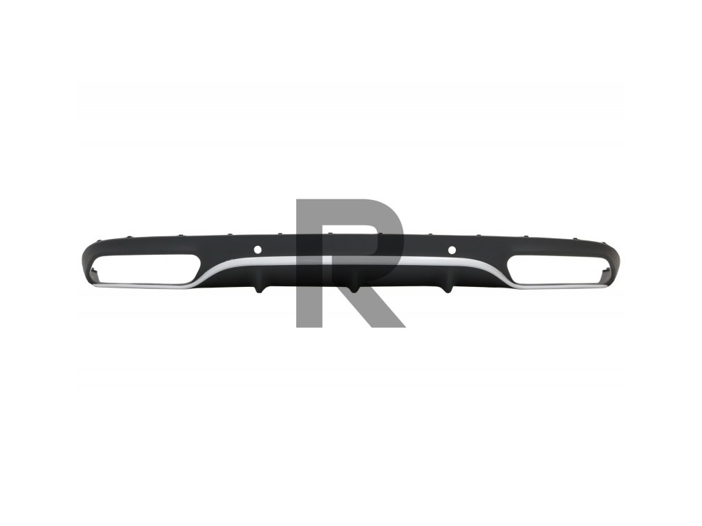 Difúzor vzduchu do zadného nárazníka, dizajn C63Difúzor vzduchu do zadného nárazníka vyrobený z vysoko kvalitného ABS plastu s dvojitými vývodmi pre dva tlmiče výfuku a otvory pre PDC