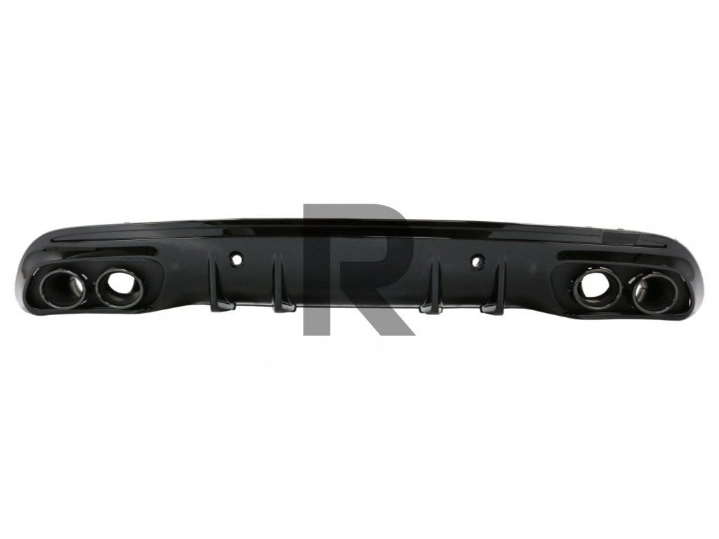 Difúzor vzduchu do zadného nárazníka vybavený dvojitými vývodmi pre dva tlmiče výfuku a otvormi pre parkovacie ovládače parkovacieho asistenta (PDC)