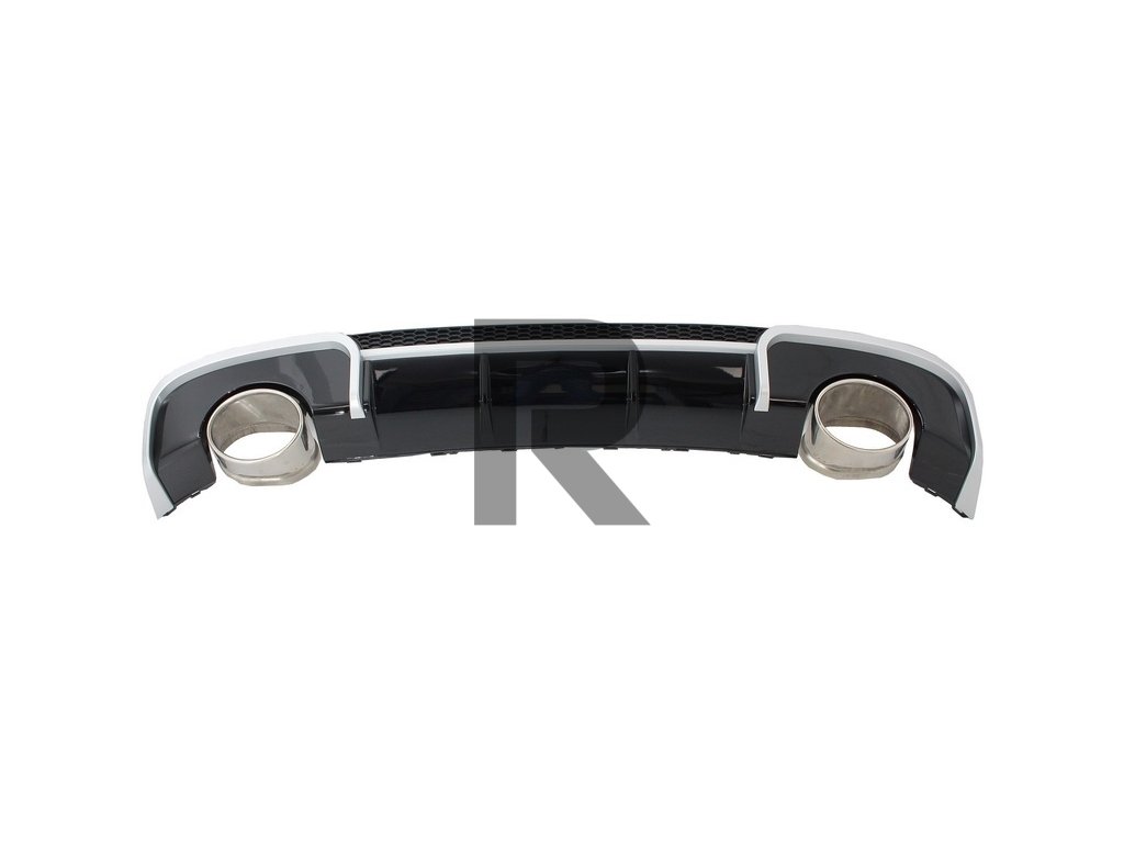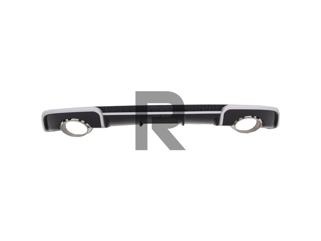 Difúzor vzduchu do zadného nárazníka, dizajn RS3Difúzor vzduchu do zadného nárazníka RS3 Design vyrobený z vysoko kvalitného polypropylénu, vybavený dvojitými výfukovými otvormi s koncovkami tlmiča z nehrdzavejúcej ocele 304 a plastovou včelinou mriežky.