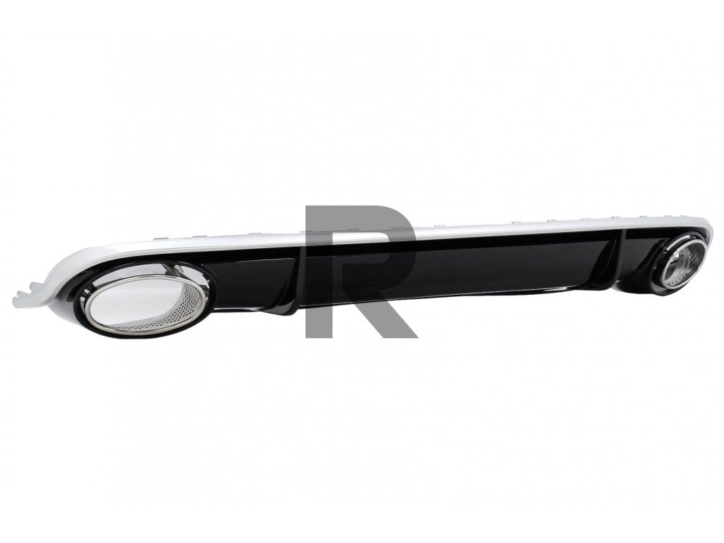 Difúzor do zadného nárazníka vyrobený z vysoko kvalitného ABS plastu, vybavený dvojitými výfukovými otvormi s koncovkami tlmiča z nehrdzavejúcej ocele 304.Povrchová úprava: Klavírna čierna/ Brúsený hliník