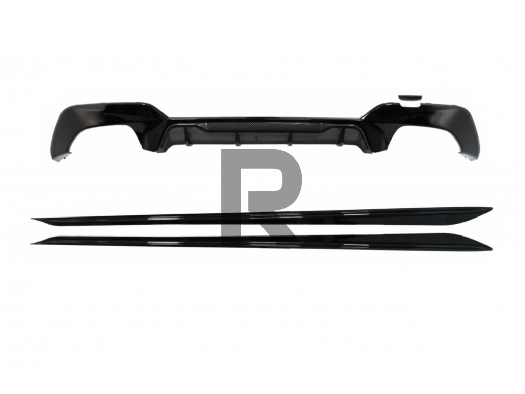 Difúzor zadného nárazníka s predĺženými bočnými prahmi vhodný pre BMW radu 3 G20 Sedan G21 Touring (2019-up) s karbónovými vložkami M Look.