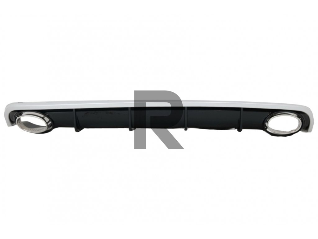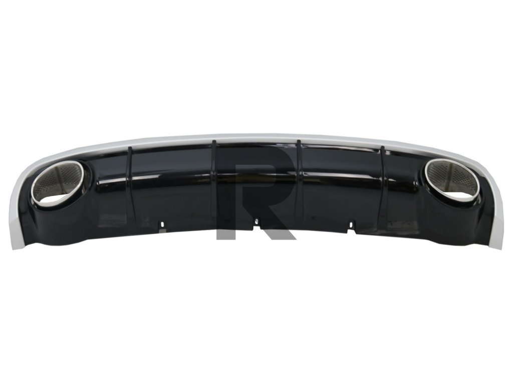 Difúzor do zadného nárazníka vyrobený z vysoko kvalitného ABS plastu, vybavený dvojitými výfukovými otvormi s koncovkami tlmiča z nehrdzavejúcej ocele 304.Povrchová úprava: Klavírna čierna/ Brúsený hliník