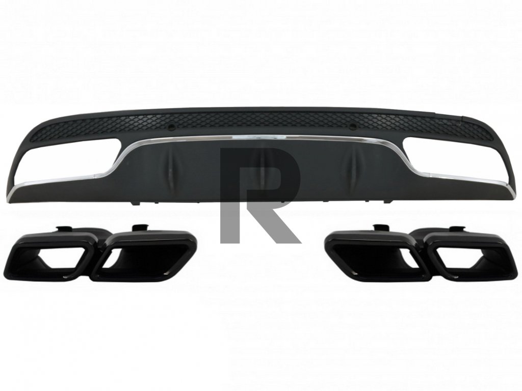 Difúzor zadného nárazníka vhodný pre Mercedes C-Class W205 S205 (2014-2020) C63 dizajn s čiernymi koncovkami tlmiča výfuku, iba pre športový paket