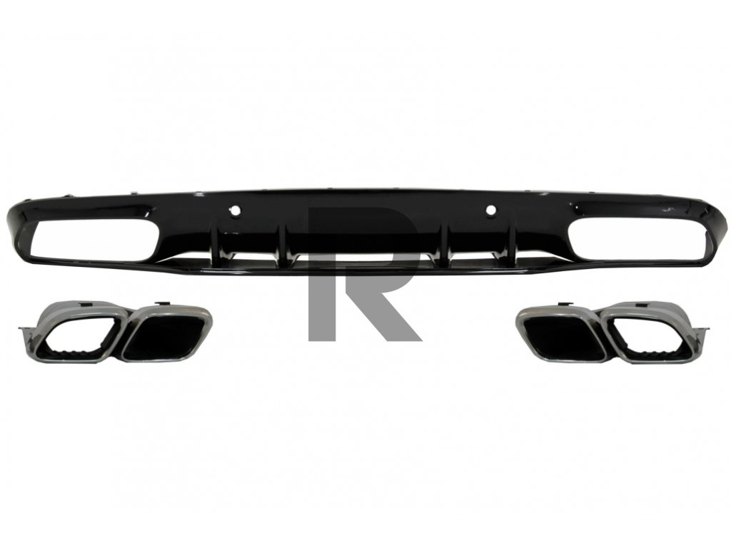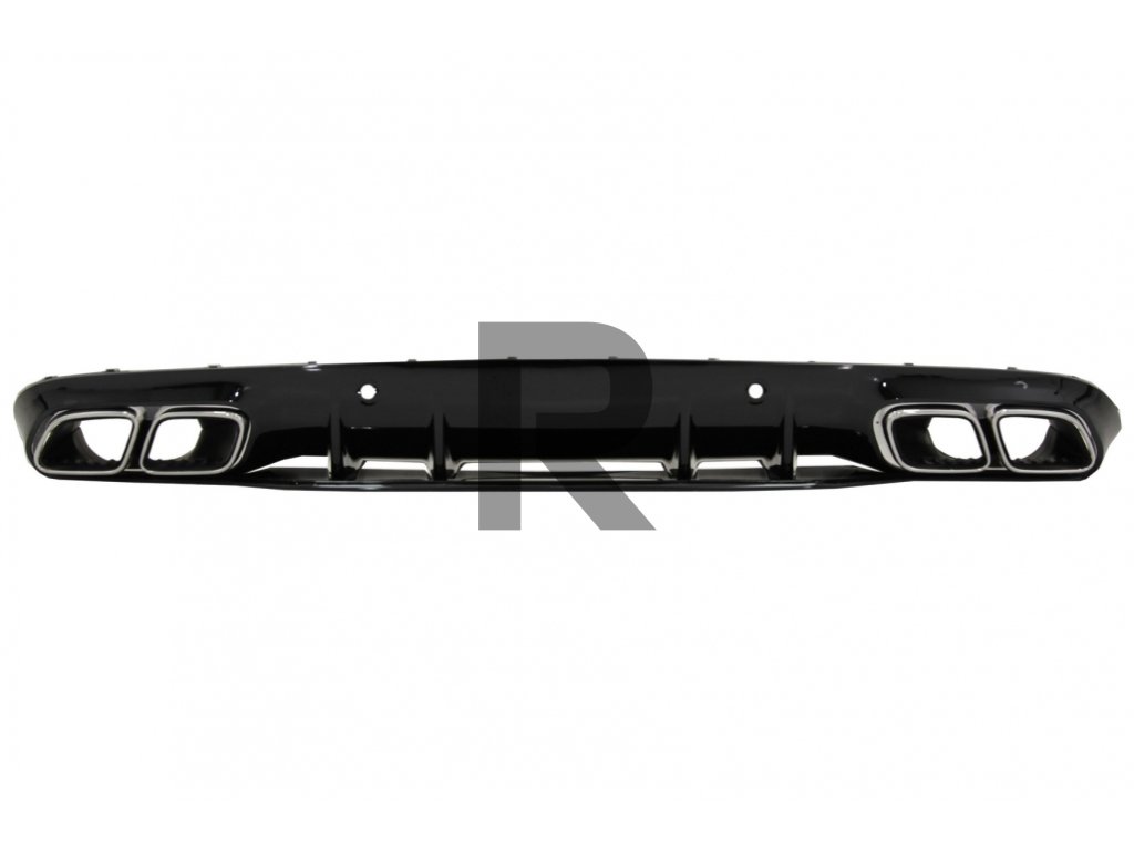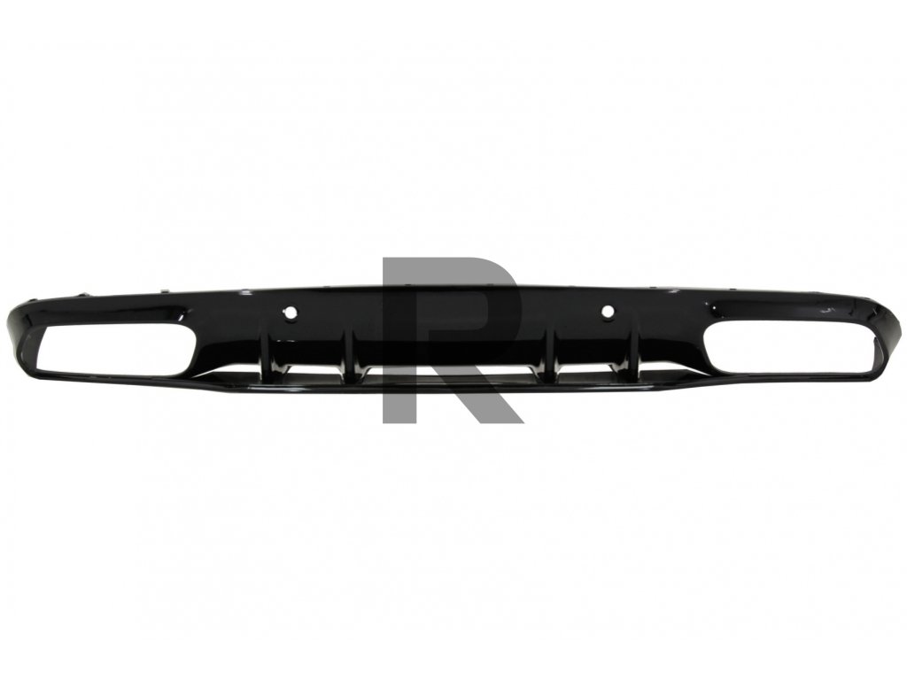 Difúzor zadného nárazníka, facelift, dizajn C63S, čiernyDifúzor vzduchu do zadného nárazníka vyrobený z vysoko kvalitného ABS plastu s dvojitými vývodmi pre koncovky dvojitého tlmiča výfuku a otvory pre PDC