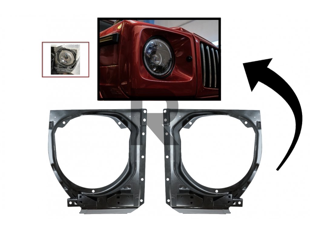 Ak je vaša trieda G vyrobená v rokoch 1996 – 2006 a plánujete upgradovať svetlomety na novší faceliftový štýl (2007 – 2018), budete si musieť pred montážou nových svetlometov zakúpiť a nainštalovať tieto držiaky na predné blatníky, inak nové svetlomety nebudú pasovať na vaše staré držiaky svetlometov.Farba: Základná. Nelakovaná.