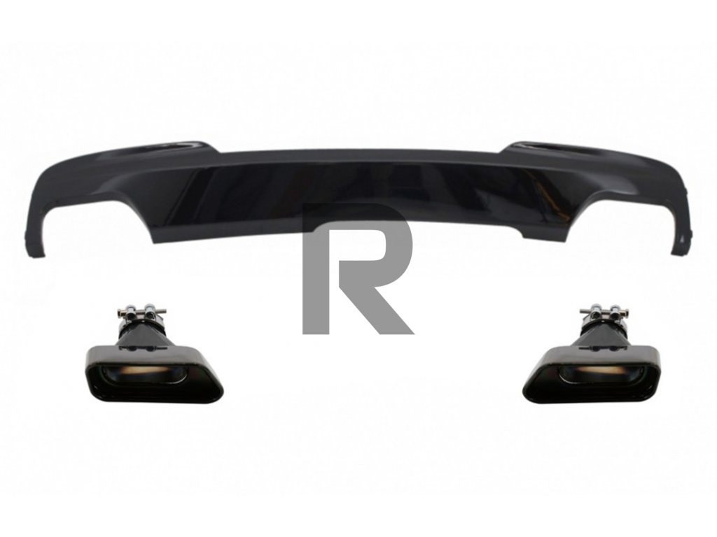 Dvojitý difúzor vzduchu Brilliant Black Edition s koncovkami tlmiča výfuku Sport M-Tech 550i V8 LCI Square vhodný pre BMW F10 F11 (2011-2017)