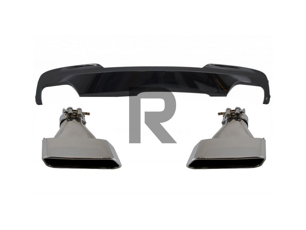 Dvojitý difúzor vzduchu Brilliant Black Edition vhodný pre BMW F10 F11 (2011-2017) s koncovkami tlmiča výfuku Sport M-Teck 550i V8 LCI Square Design