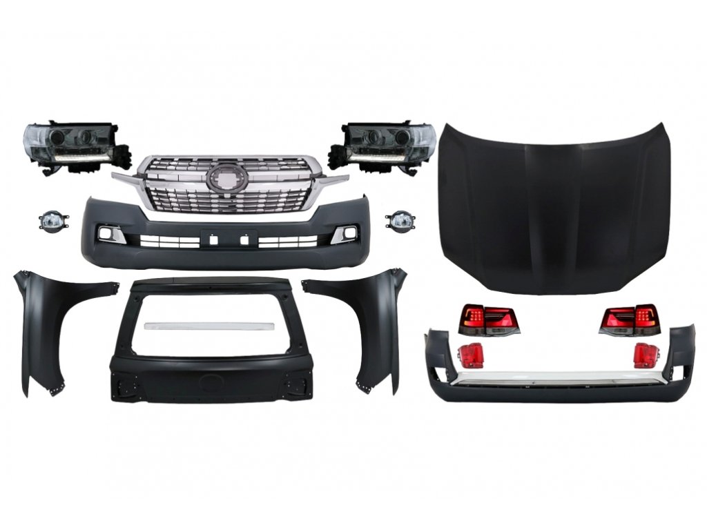 This complete conversion body kit is meant to change your car appearance and transform your Toyota Land Cruiser FJ200 from the (2008-2015) model to the new 2016-Up LC200 model.This retrofit body kit makes the upgrade to the facelift look starting 2009-Up.