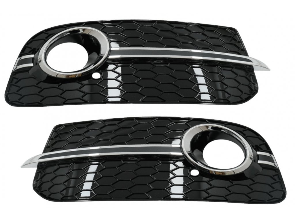 Fog Lamp Covers Side Grilles suitable for Audi Q5 SUV 8R Facelift (2012-2016) RS Design Black & Chrome